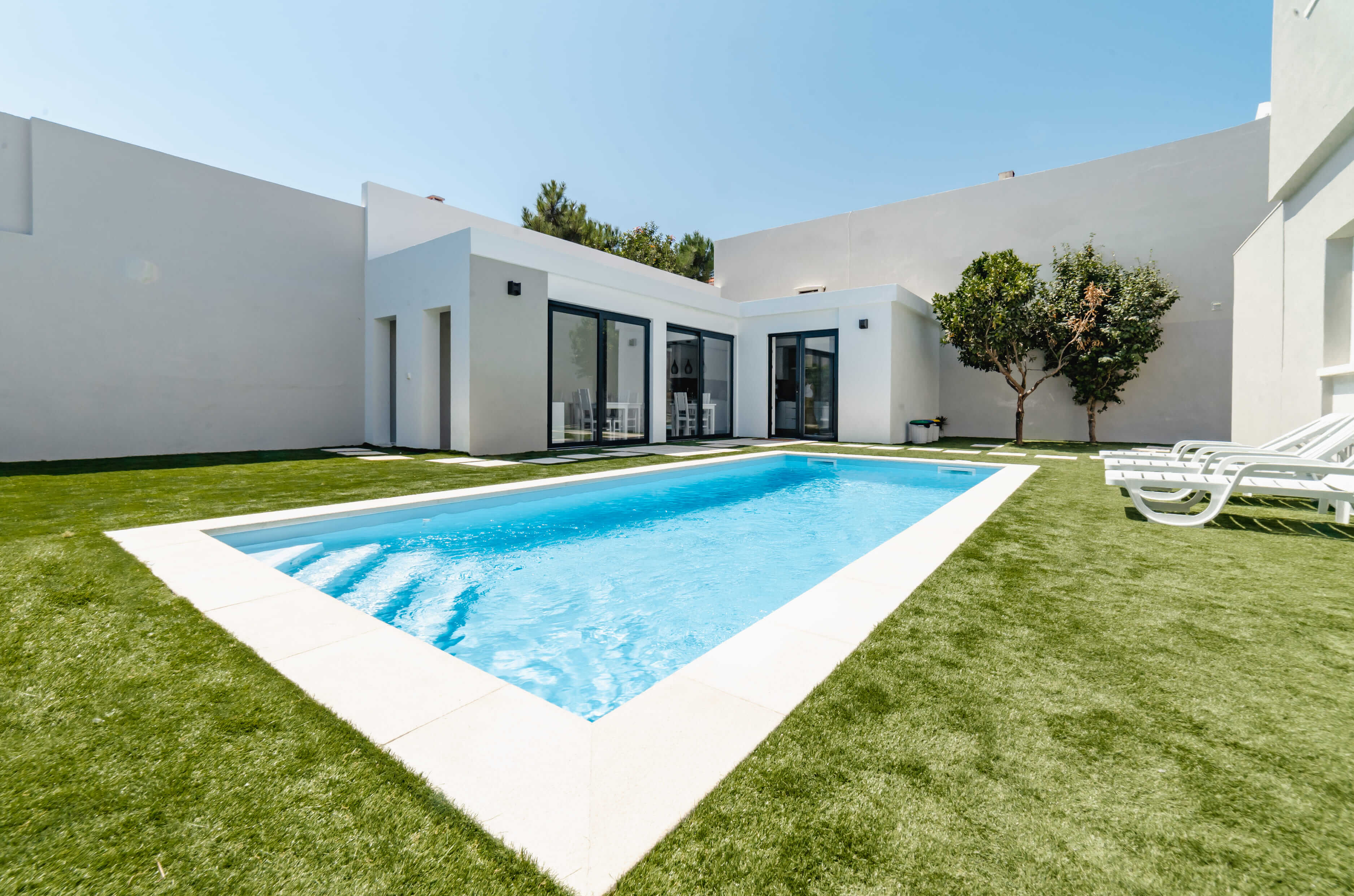 Surroundings in concrete paving stone. The water treatment is made manually by adding chlorine and has a pH controler. The heating is made trough a heat exchanger.
